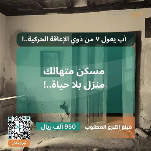 اب من ذوي الاعاقة الحركية وأسرته 👨🦽 يعول ٧ أبناء من ذوي الإعاقة الحركية ♿️ ٣ أبناء من ذوي الإعاقة الحركية ٤ بنات من ذوات الإعاقة الحركية يُصارع الحياة مع أسرته بصمت، يعيشون في منزل متهالك يفتقد لأبسط مقومات السكن 🏚️ وبعد معاناة طويلة … وجد الأب منزلًا مناسبًا لحالتهم الصحية والمعيشية 🏡 لكنهم يقفون عند آخر باب: سعر الشراء الذي يعجز عنه تخيل لذة الأجر حين تكون سببًا في شراء بيت لعائلة بعطاءك تمنحهم: 🌤️ دفء الاستقرار 🤍 راحة الأبناء ♿ 🕊️ وكرامة السكن بعد سنوات من العجز والحرمان 💔 كن أنت من يفتح لهم باب الحياة من جديد 🔑 مهما كان عطاؤك بسيطًا… فهو عند الله عظيم 🌱