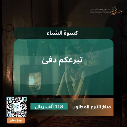 قال النبي ﷺ: "من استطاع منكم أن ينفع أخاه فليفعل" برودة الشتاء تؤثر على ذوي الإعاقة الحركية بشكل أكبر من غيرهم..! يهدف هذا المشروع إلى توفير ملابس شتوية دافئة لهم ولأسرهم، تشمل المعاطف والقبعات والشالات وأجهزة التدفئة وغيرها من الاحتياجات الأساسية.. قيمة كفالة الأسرة الواحدة: 1000 ريال ساهم الآن وكن سببًا في دفء أسرة محتاجة..